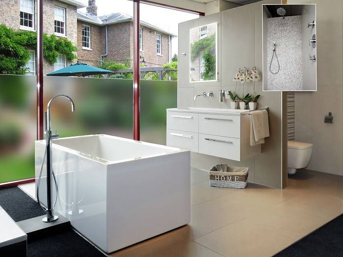 Je kunt jouw droombadkamer van A tot Z laten ontwerpen. In een badkamerspeciaalzaak kan de verkoopadviseur met behulp van een 3D tekenprogramma een compleet ontwerp maken van jouw toekomstige badkamer. Jij kiest het sanitair uit en geeft je wensen door en aan de hand van de afmetingen van je badkamer, je wensen en budget, kan de adviseur de ideale opstelling creëren. In een kleine badkamerruimte, is wat meer creativiteit vereist. Zo is er waarschijnlijk geen plaats voor zowel een douche als badkamer. Maar om toch van beiden gebruik te kunnen maken, kan er worden gekozen voor een bad met badwand. De badwand maakt het mogelijk staand in het bad te douchen zonder dat er water rondspat. Multifunctioneel dus. Ook kan er rekening gehouden worden met het soort vloer- en wandtegels dat je kiest. Zo maken grote tegels van 60x60 cm bijvoorbeeld de ruimte optisch groter.Ook lichte kleuren zijn zeer geschikt voor een kleinere oppervlakte.